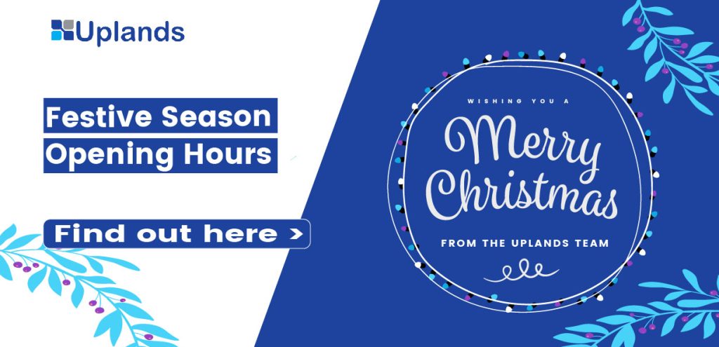 10 Dec Business Festive Period Opening Hours Posted by Uplands Team 18/11/2024 During the upcoming festive period our opening hours are changing slightly, so we wanted to make sure you are aware of the support avai... Continue reading